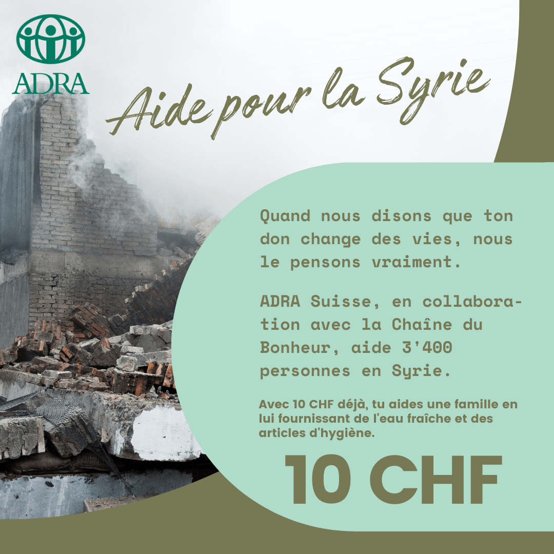 ADRA Suisse et la Chaîne du Bonheur apportent leur aide en Syrie